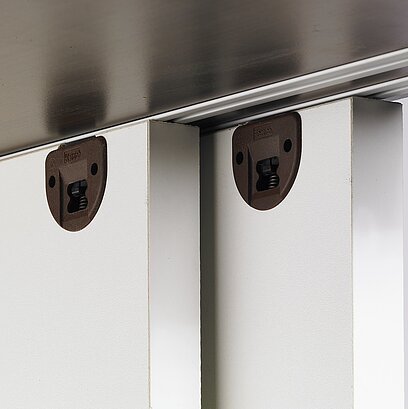 Des profilés en aluminium à encastrer dans les panneaux inférieur et supérieur de l’armoire. Une utilisation polyvalente, même en cas de portes lourdes.
