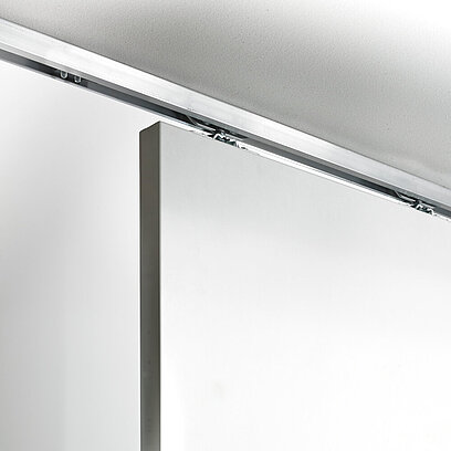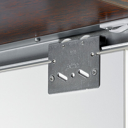 Pour le système de porte coulissante SlideLine 16 et SlideLine 16plus Il suffit d'une perceuse sans fil, car les profilés en aluminium et les pièces mobiles doivent uniquement être vissés sur les parties inférieure et supérieure du corps de l'armoire ou sur les portes. Un autre avantage est que le système peut être aussi bien utilisé pour les armoires (attention : position de porte rentrante) que pour les séparations de pièce. Il faut alors fixer les profilés de coulissage double sur le sol et au plafond ou au support plafond.